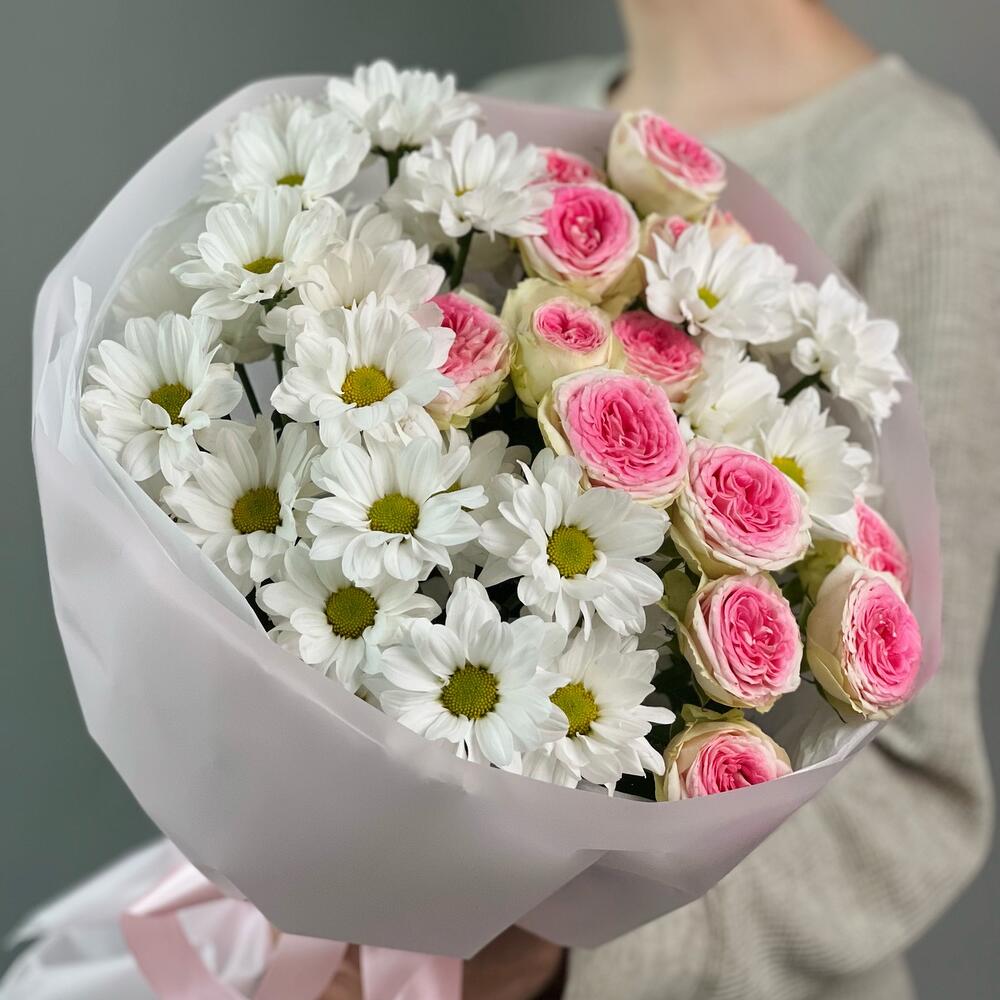 ️Нежный Букет хризантемы ромашки и кустовые пионовидные розы в Юрюзани